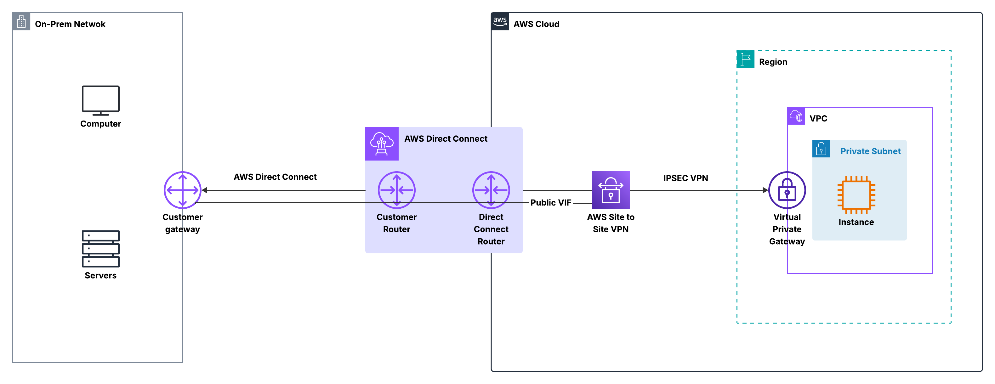 Rather than choosing between VPN or Direct Connect, this approach lets you use both together, combining the strengths of each.