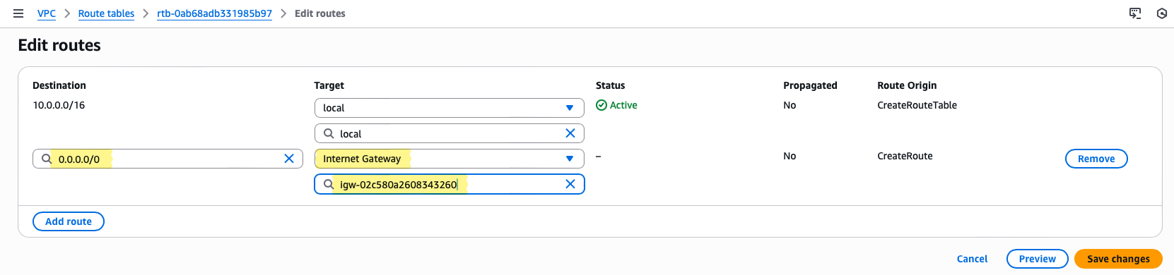 This step transforms abstract routing concepts into visible, testable behaviour, reinforcing why we defined the VPC, subnets, and gateways exactly as we did.