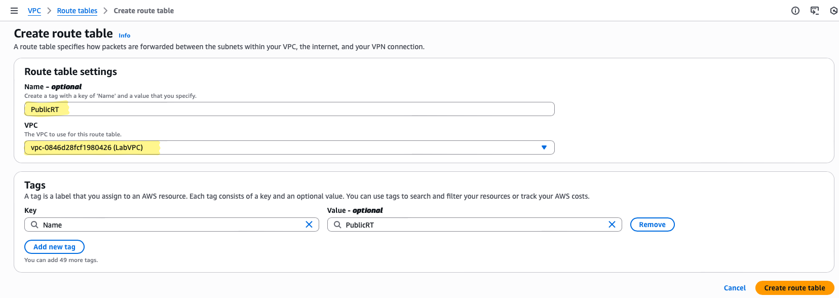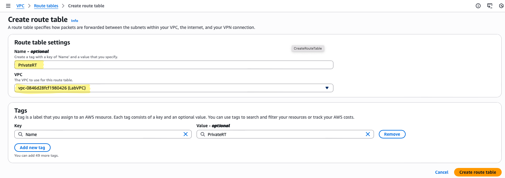 For this lab, we define the VPC with the IPv4 CIDR block: