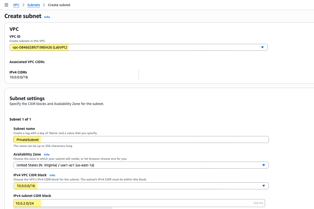 LabVPC) - CIDR block: