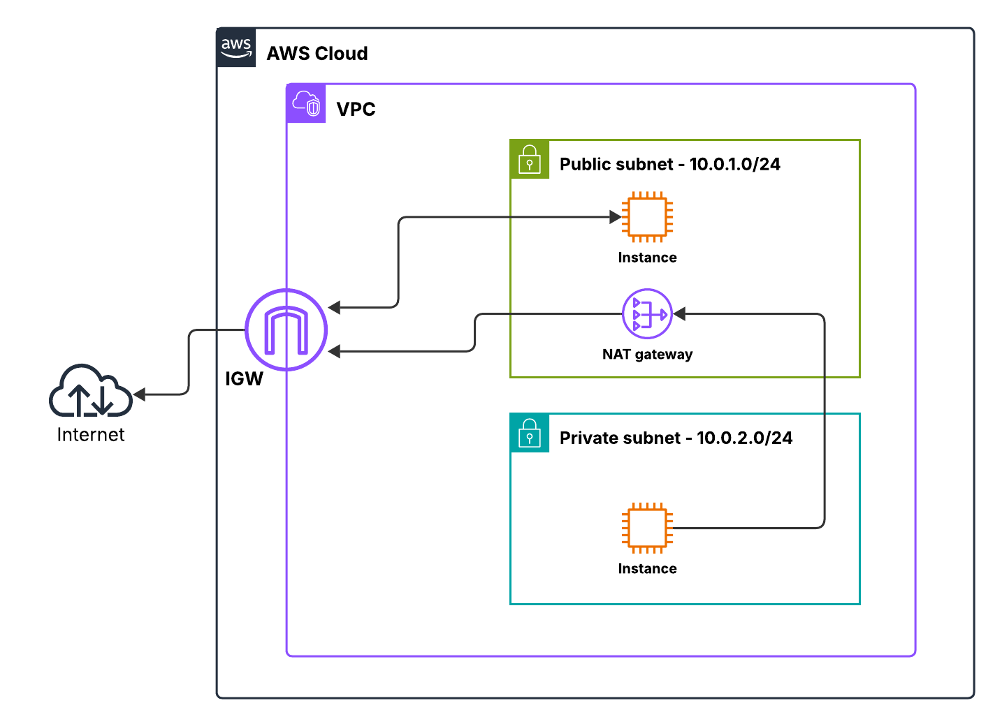 The public instance is expected to initiate and receive Internet traffic directly via the Internet Gateway.