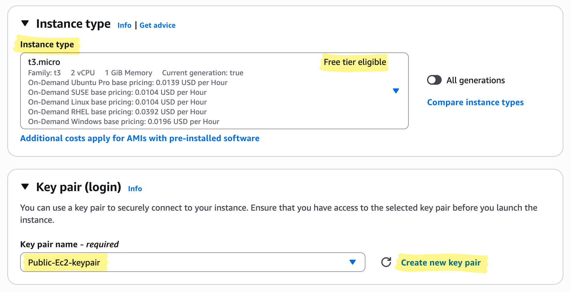 - Key pair: Create/download Public-Ec2-keypair.pem