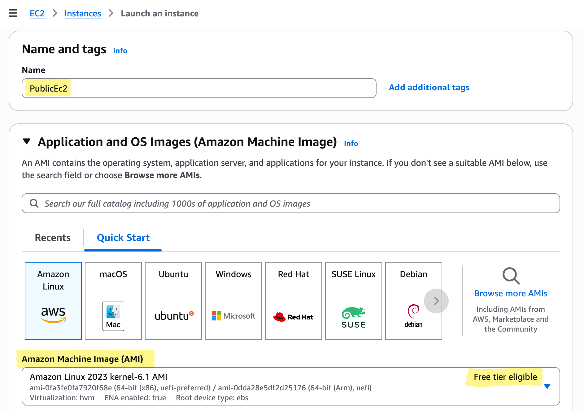 We will use one public EC2 as a bastion/NAT instance and one private EC2 to test connectivity. Security groups define who can connect to whom. Public instance can access Internet directly; private instance can only access Internet via NAT.