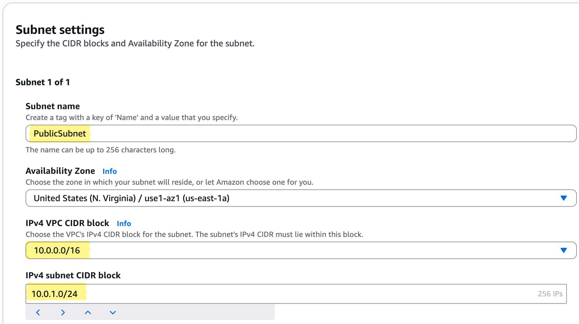 💡 Tip: Use a /16 CIDR (e.g., 10.0.0.0/16). This provides over 65,000 IP addresses — more than enough for multiple subnets.