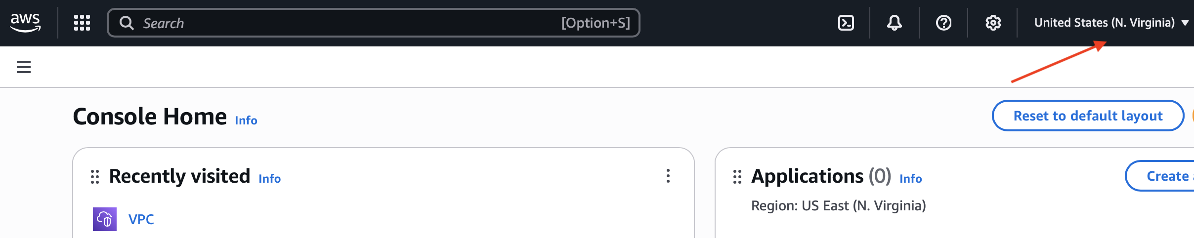 - Select an AWS region: I’ll use us-east-1 (N. Virginia), but any region that supports free-tier EC2 instances works for this lab.