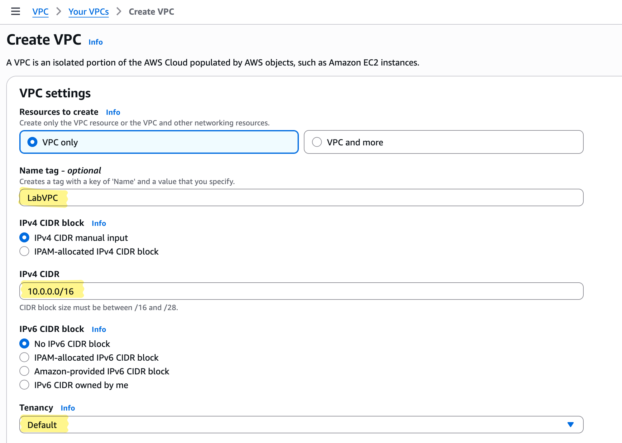 Pro Insight: The VPC defines the routing scope for all subnets, route tables, and gateways. Choosing it thoughtfully simplifies the rest of the lab.